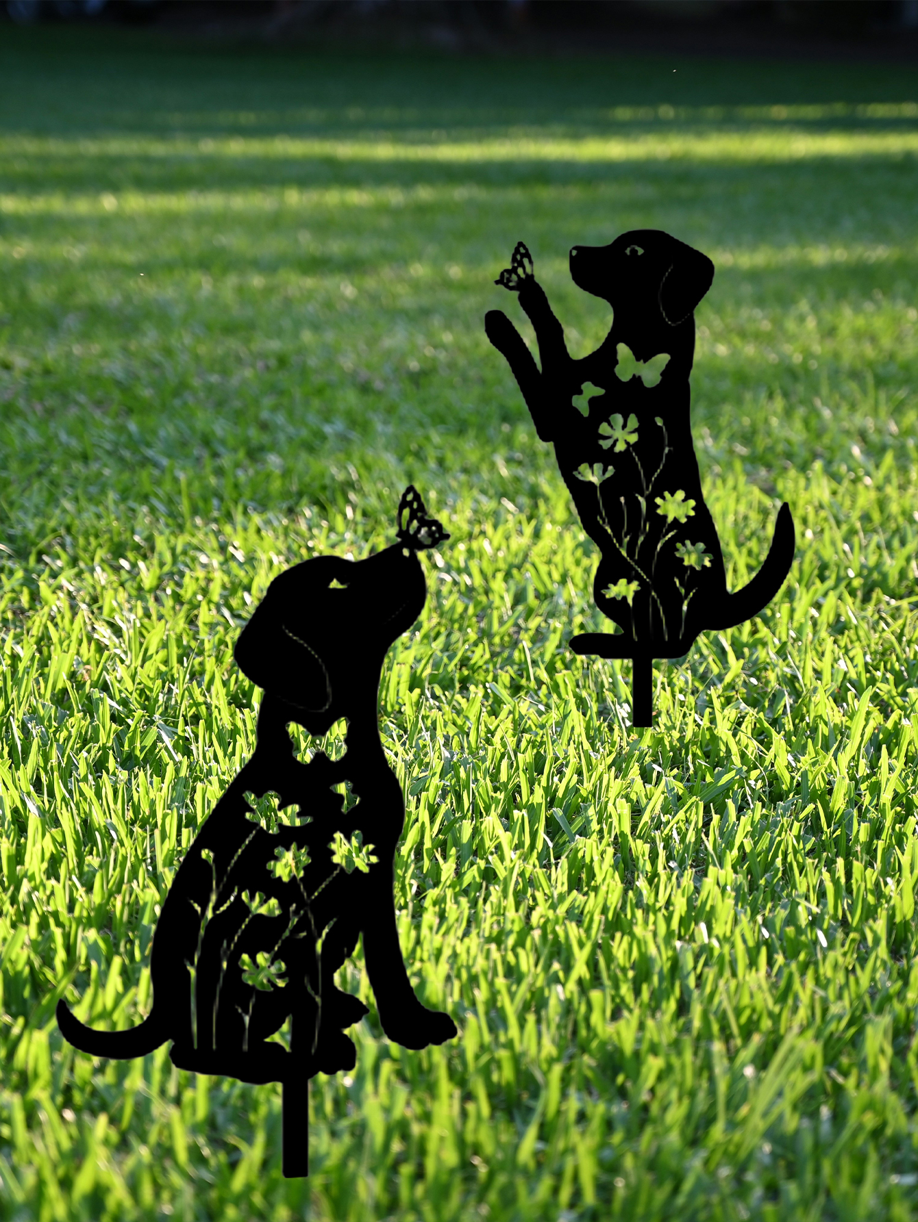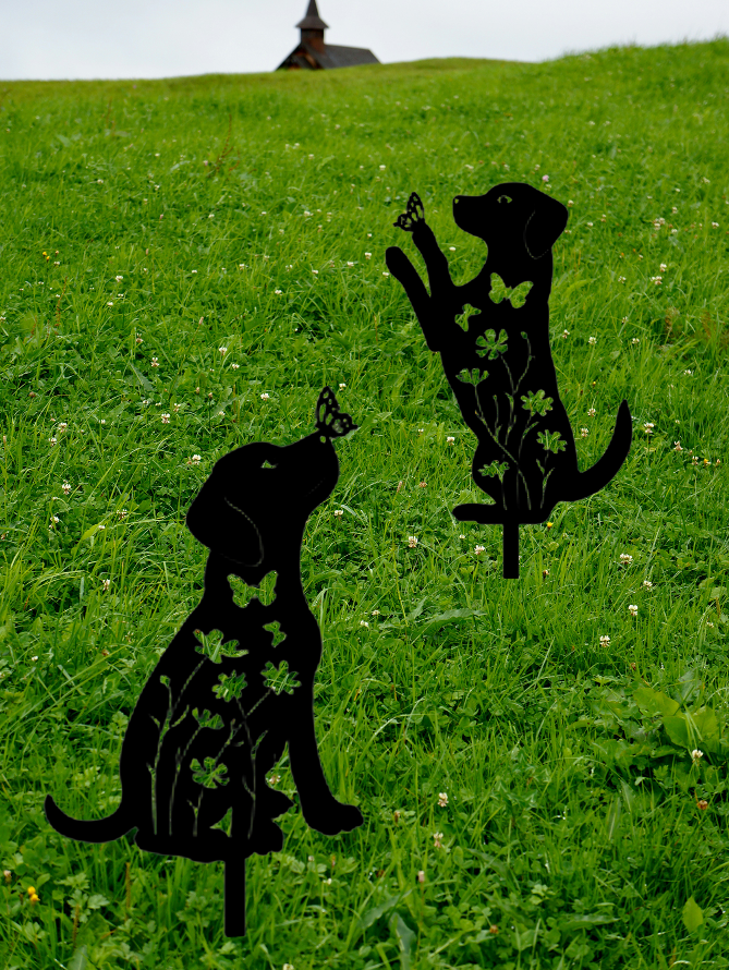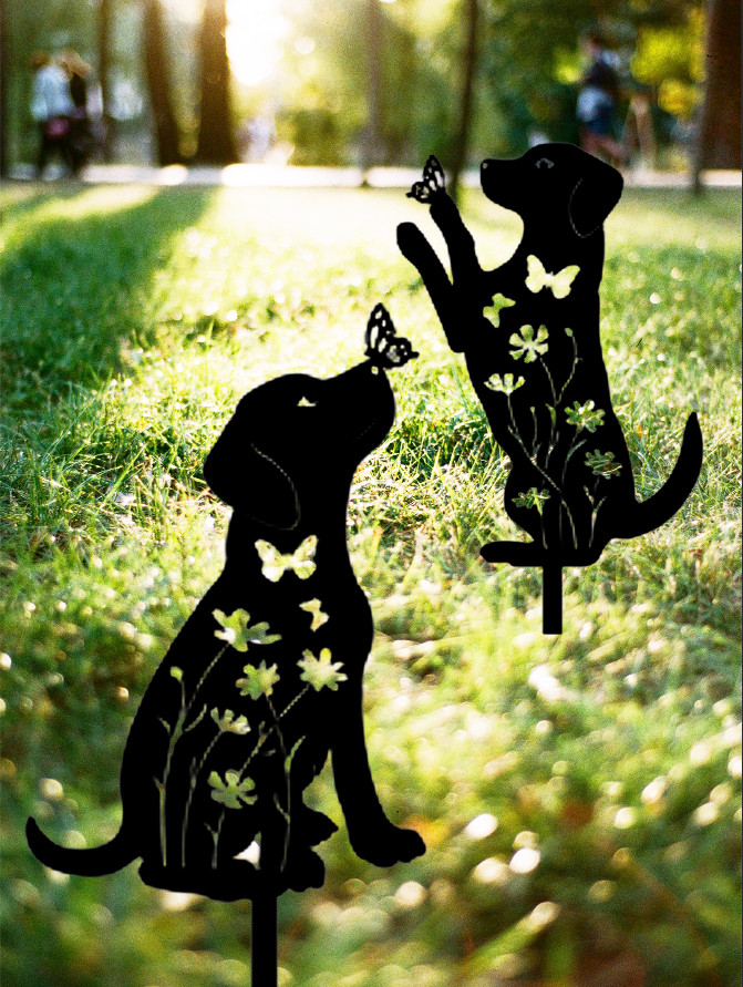 2pcs Metal Dog Garden Decor,Adorable Puppy Silhouette Stakes Decorative Outdoor